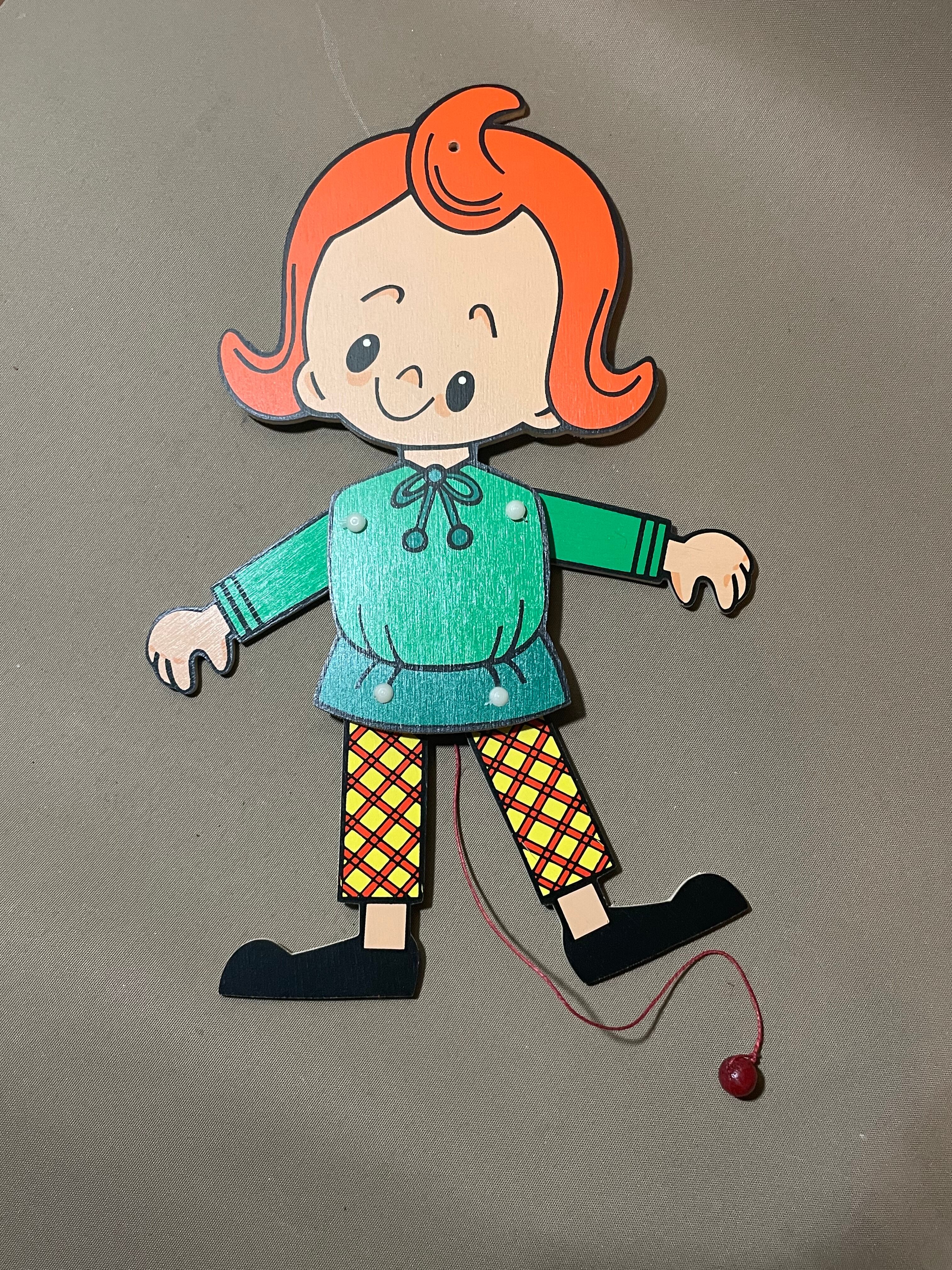 ひもがついていて、引くと手足がゆらゆら動きます。